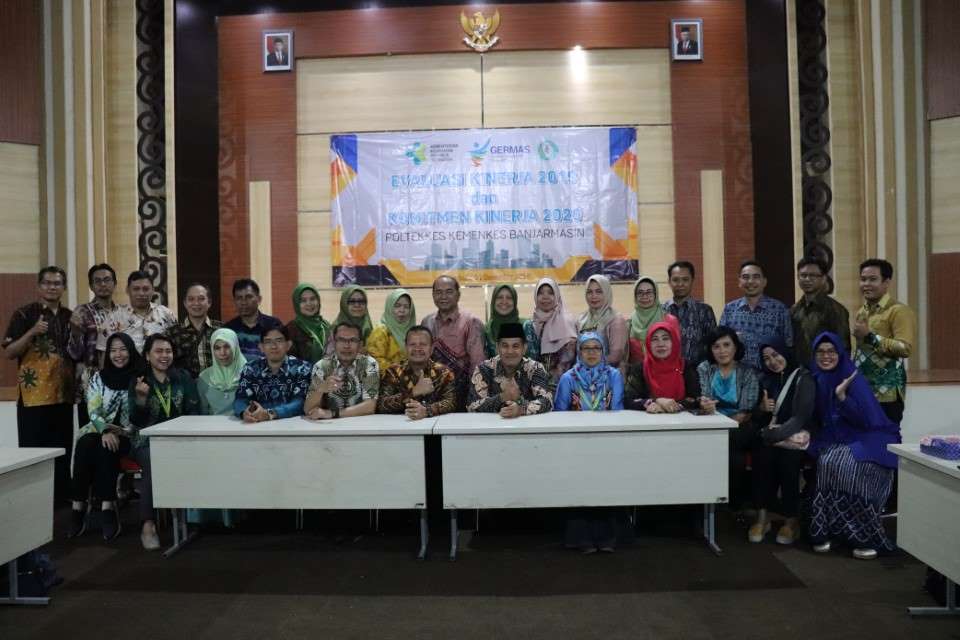 Banjarbaru, 31 Desember 2019, Poltekkes Kemenkes Banjarmasin mengadakan kegiatan Evaluasi Kinerja 2019 dan Komitmen Kinerja 2020 demi meningkatkan mutu dan kualitas Sumber Daya Manusia dalam Pendidikan dan Manajemen Pengelolaan Institusi yang bernanung pada Kementerian Kesehatan. Acara di hadiri oleh seluruh Jajaran Pimpinan Direktorat, Jajaran Pimpinan Jurusan dan Ketua Program Studi dalam Lingkungan Poltekkes Kemenkes Banjarmasin.